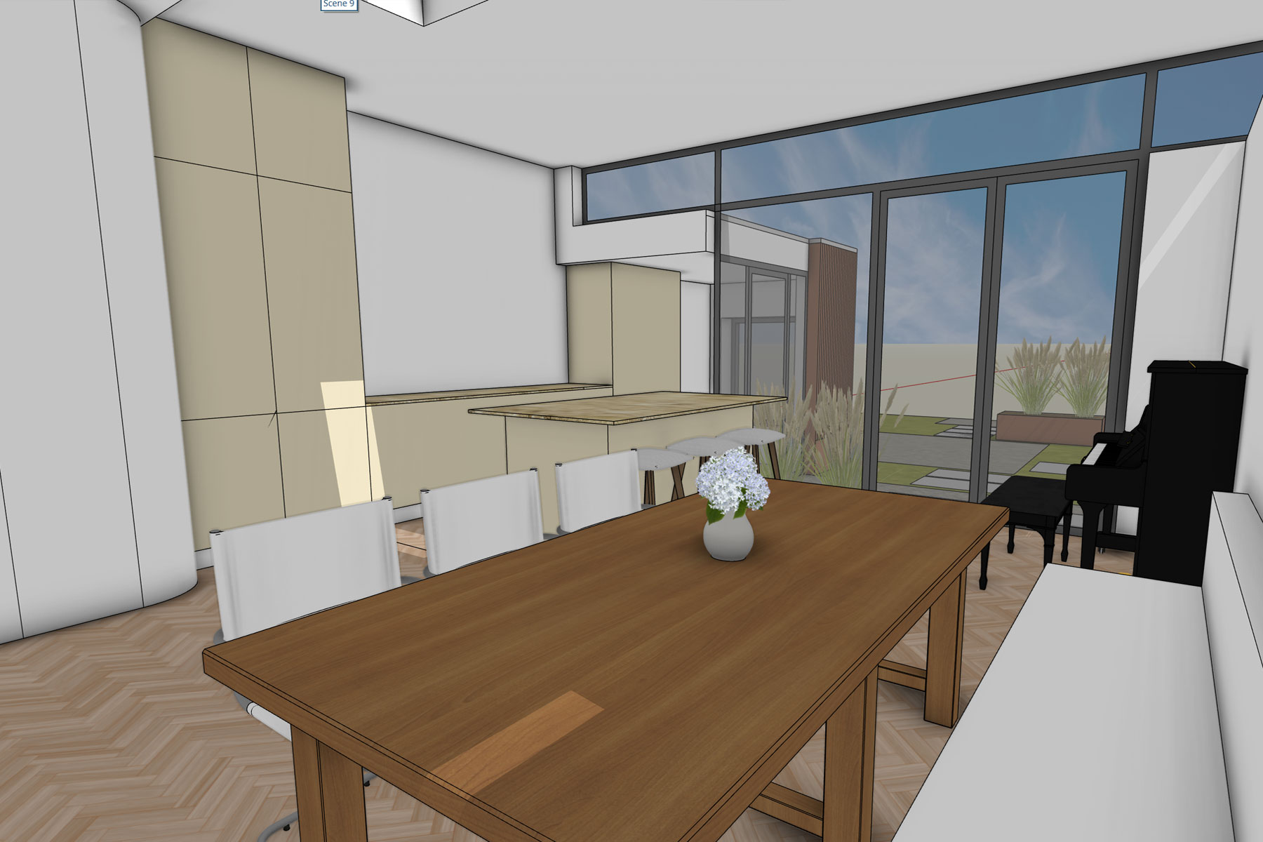 The brief for this Leiden home renovation was to create a spacious, bright and sunny living space. The existing homes in this Leiden neighbourhood are quite narrow, but by utilising the wider back garden, a broad extension is possible. This will allow the home to have a much more spacious layout than it currently has.