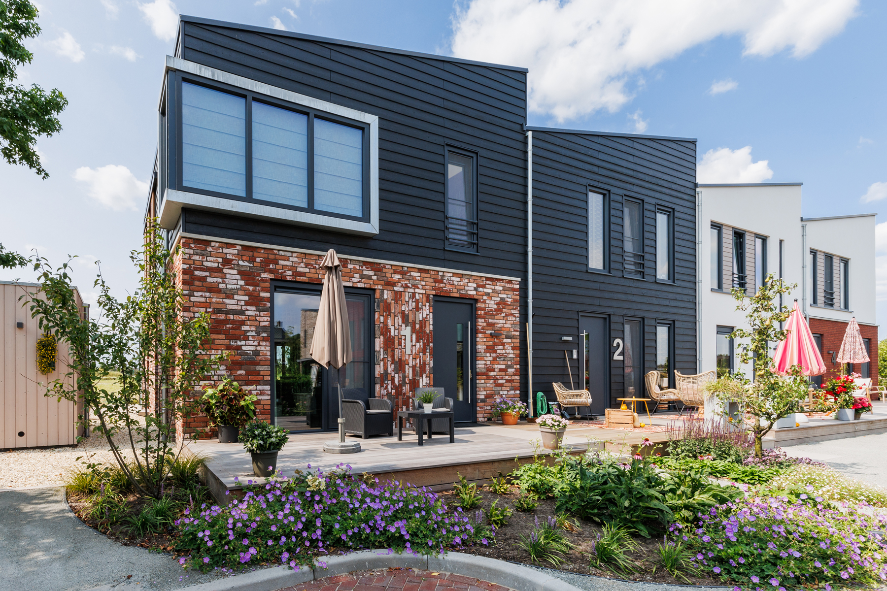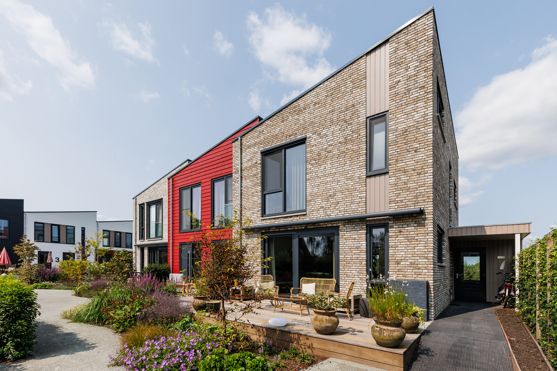 Each of the retirement homes has a unique design. Some homes have the living room on the first floor, while there are also ground floor and upper floor units in the plan. Each home has its own, distinctive facade material, making them individually recognisable. At the same time, there is coherence in the design through the choice of a repeating main form and a shared window frame family.