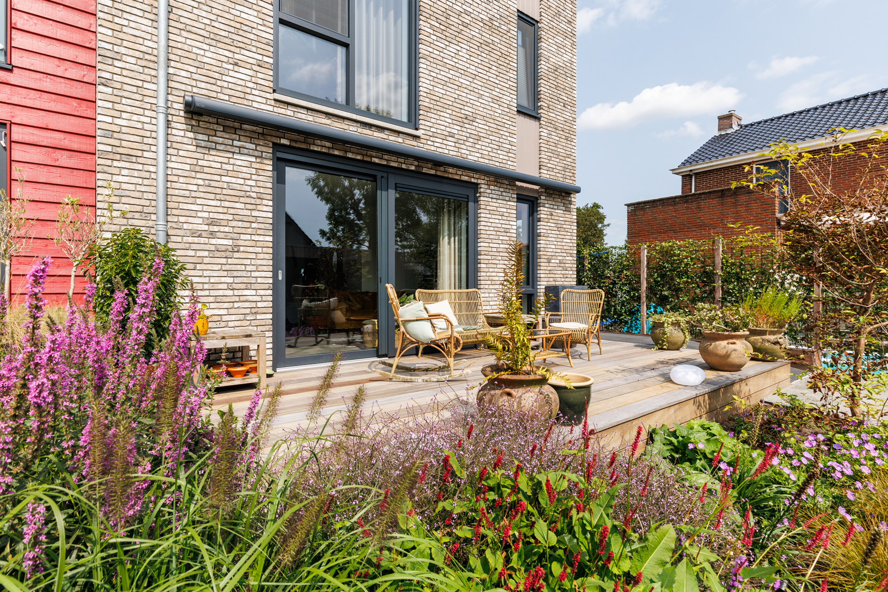 The homes are situated around the central, communal garden. This garden serves as the entrance and offers residents the opportunity for a short stroll. In the garden, various spots have been laid out for relaxation, but there is also space for (grand)children to play. The maintenance of the garden is carried out by the residents themselves, which contributes to the involvement and sense of community.