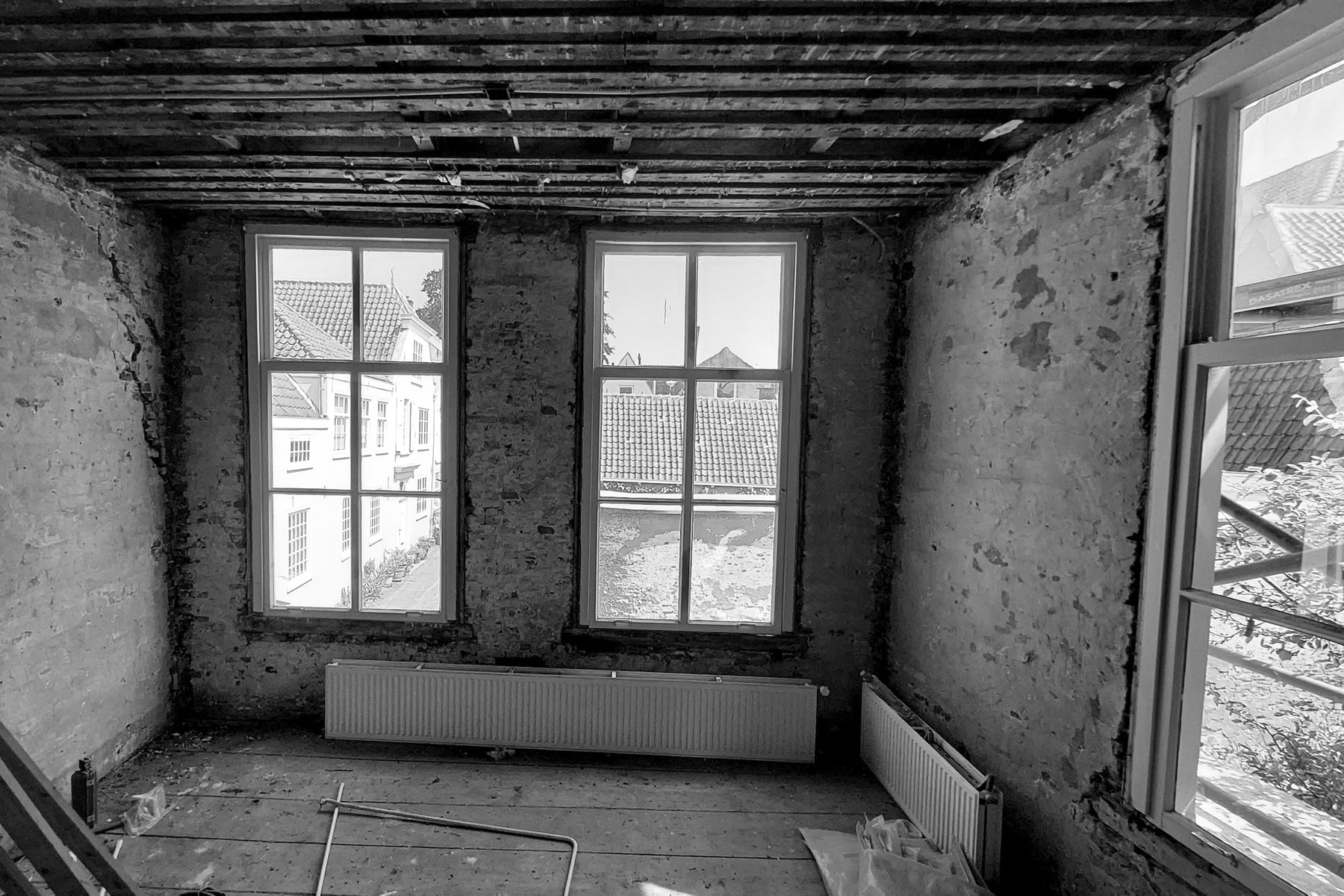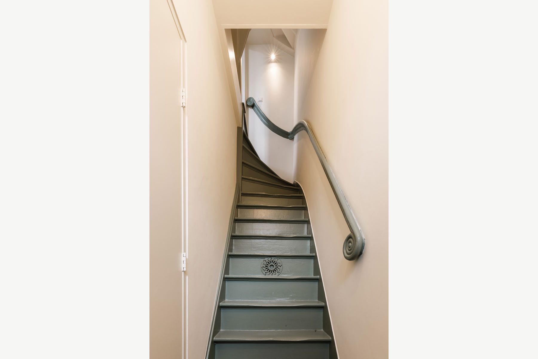 In the historic centre of Leiden, behind the Rapenburg, stands a small monumental building on a quiet alley. This building has been fully restored and converted into a compact upper-floor apartment with a garage on the ground floor.