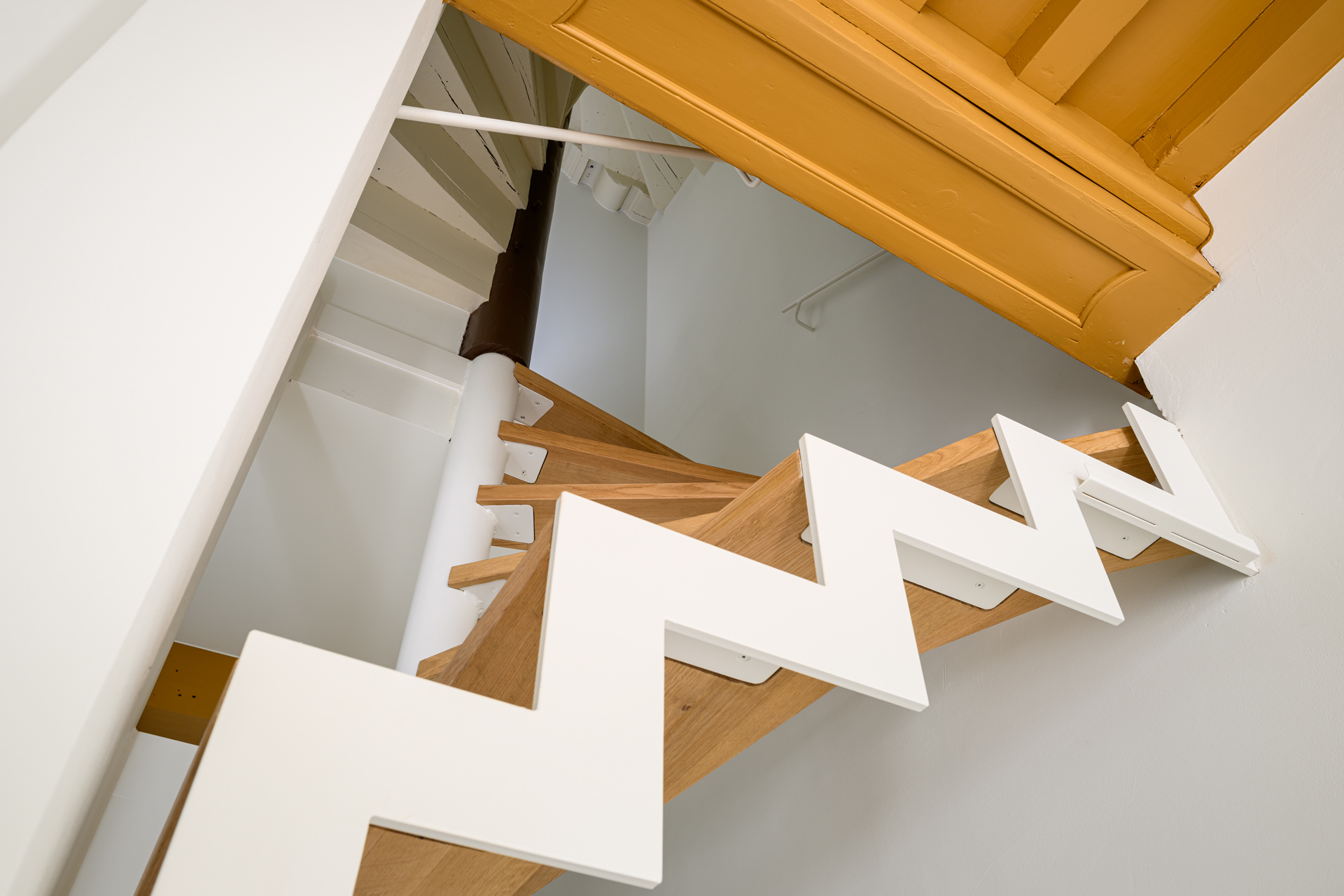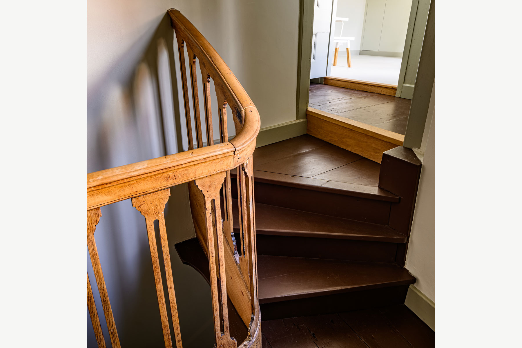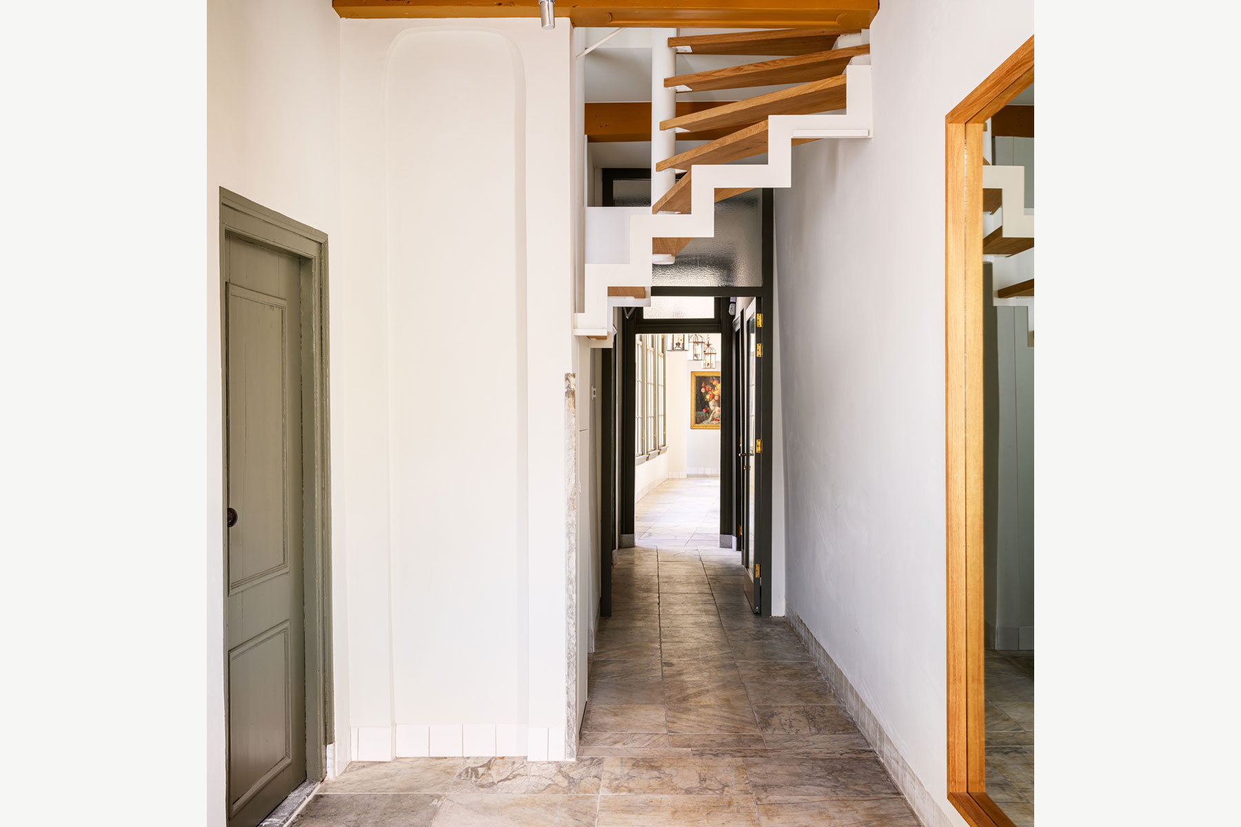 To achieve this, a new staircase was installed in the front house, connecting the ground floor to the first floor within all the monumental parts.
