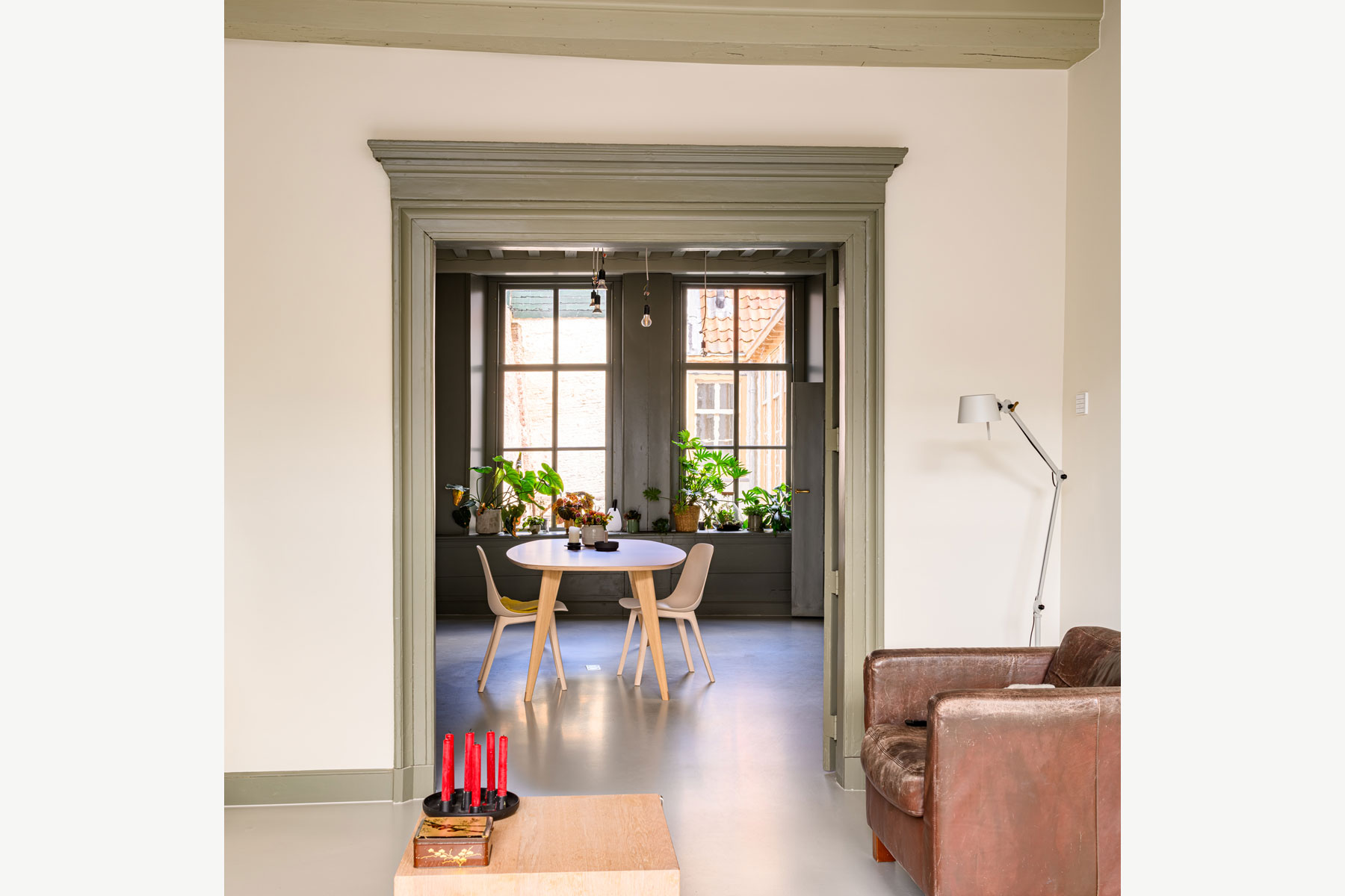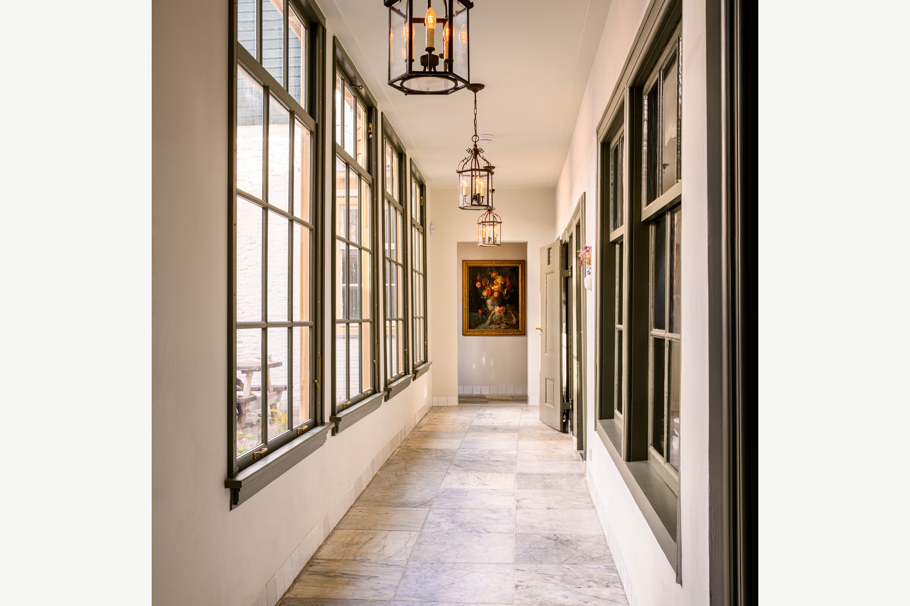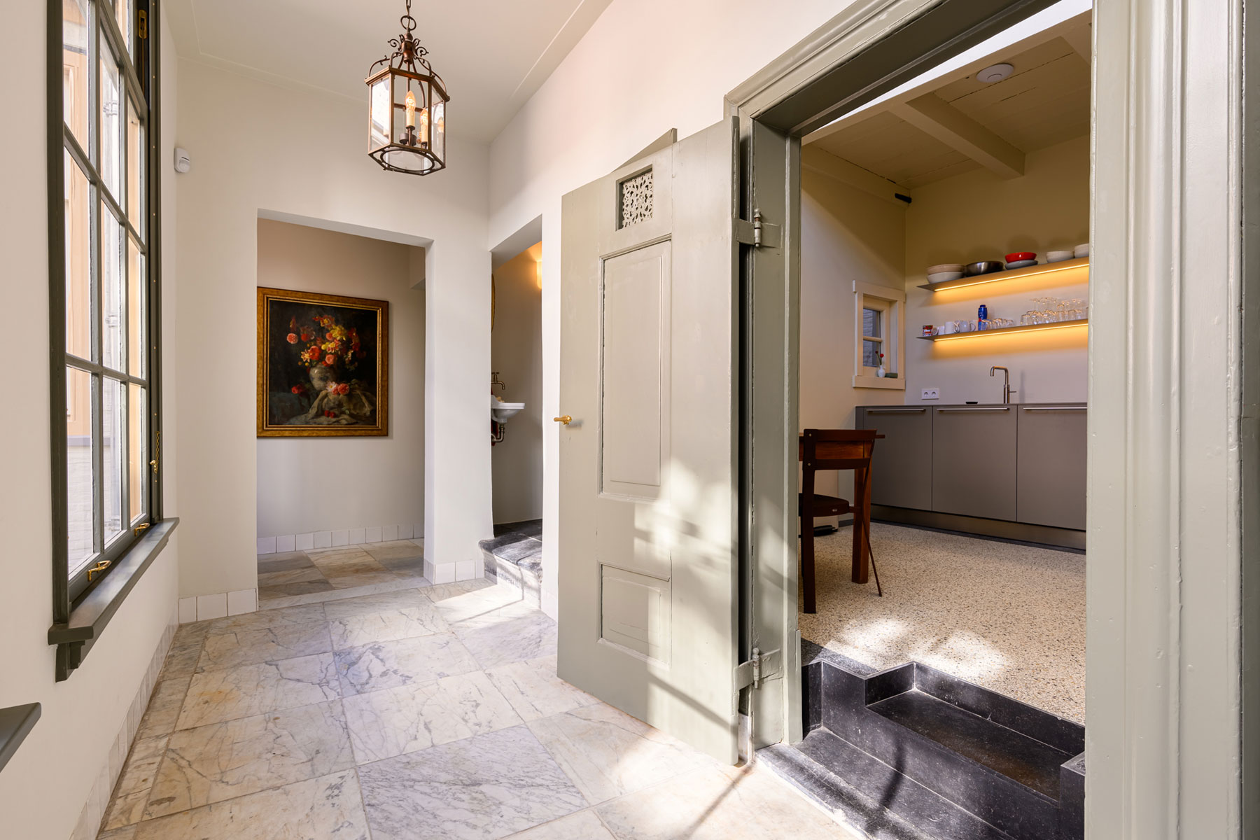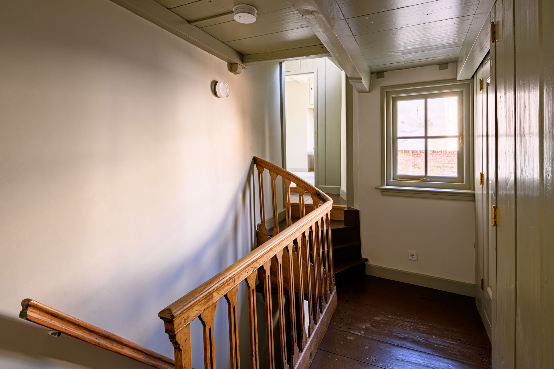 To achieve this, a new staircase was installed in the front house, connecting the ground floor to the first floor within all the monumental parts.