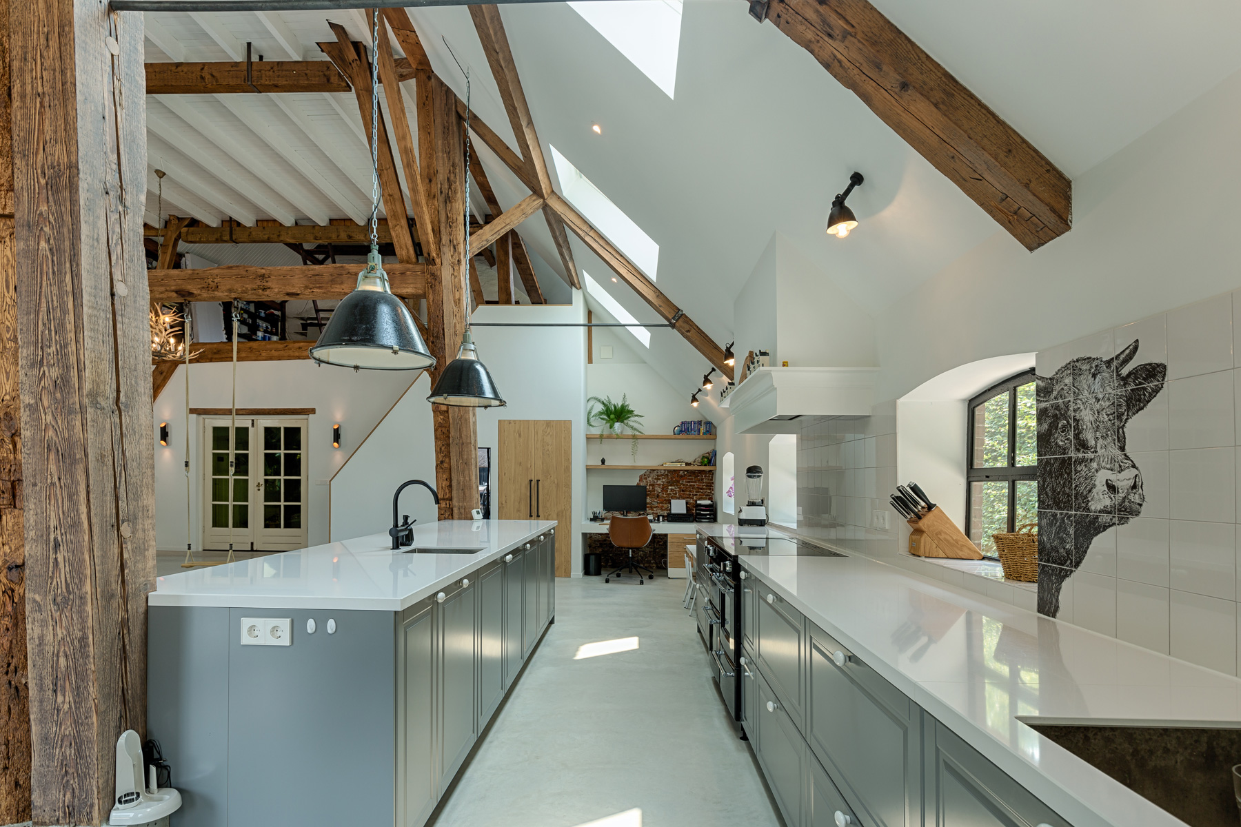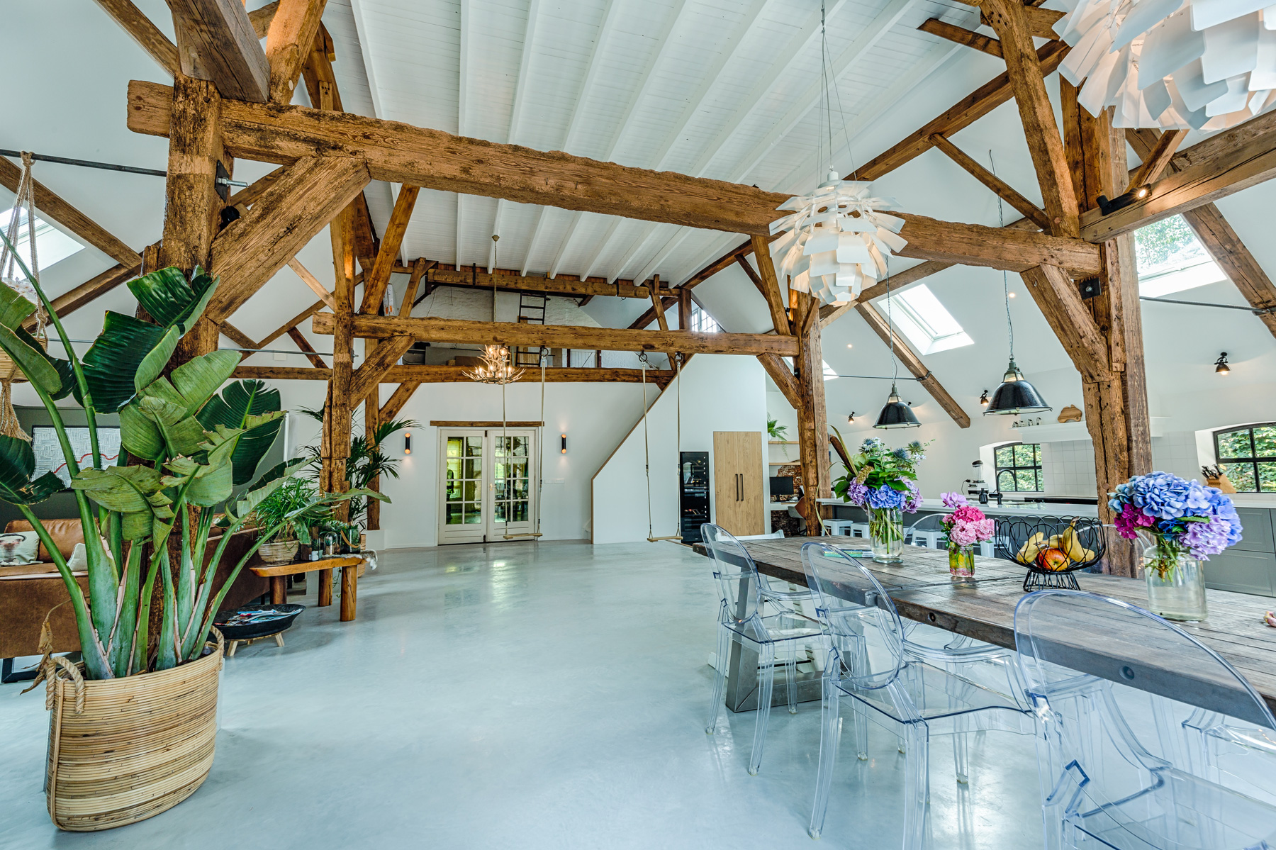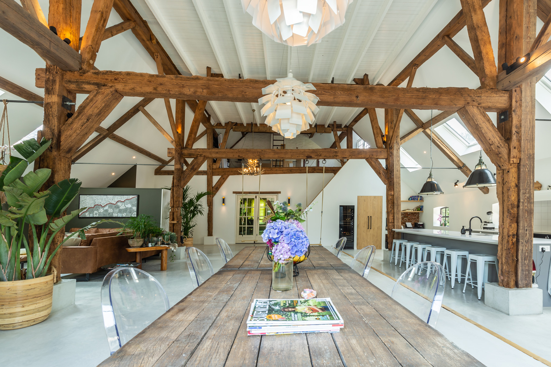 Het zeventiende eeuwse casco van de stal is hersteld, verstevigd en aangevuld met bijpassend hout.