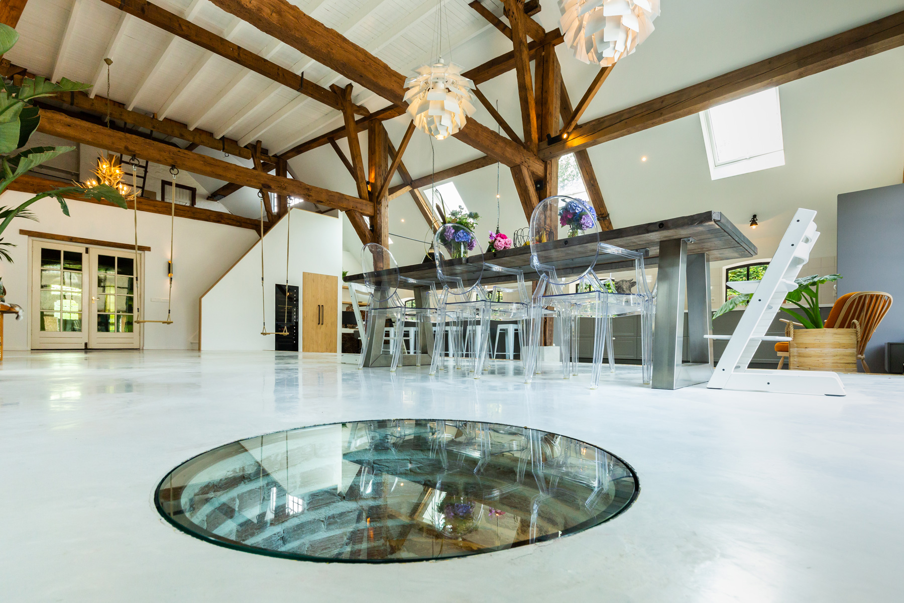 In de achtergevel is een nieuwe opening gemaakt zoals deze er ooit geweest zou kunnen zijn. Hierdoor is de ruimte veel lichter geworden en is er meer contact met buiten.