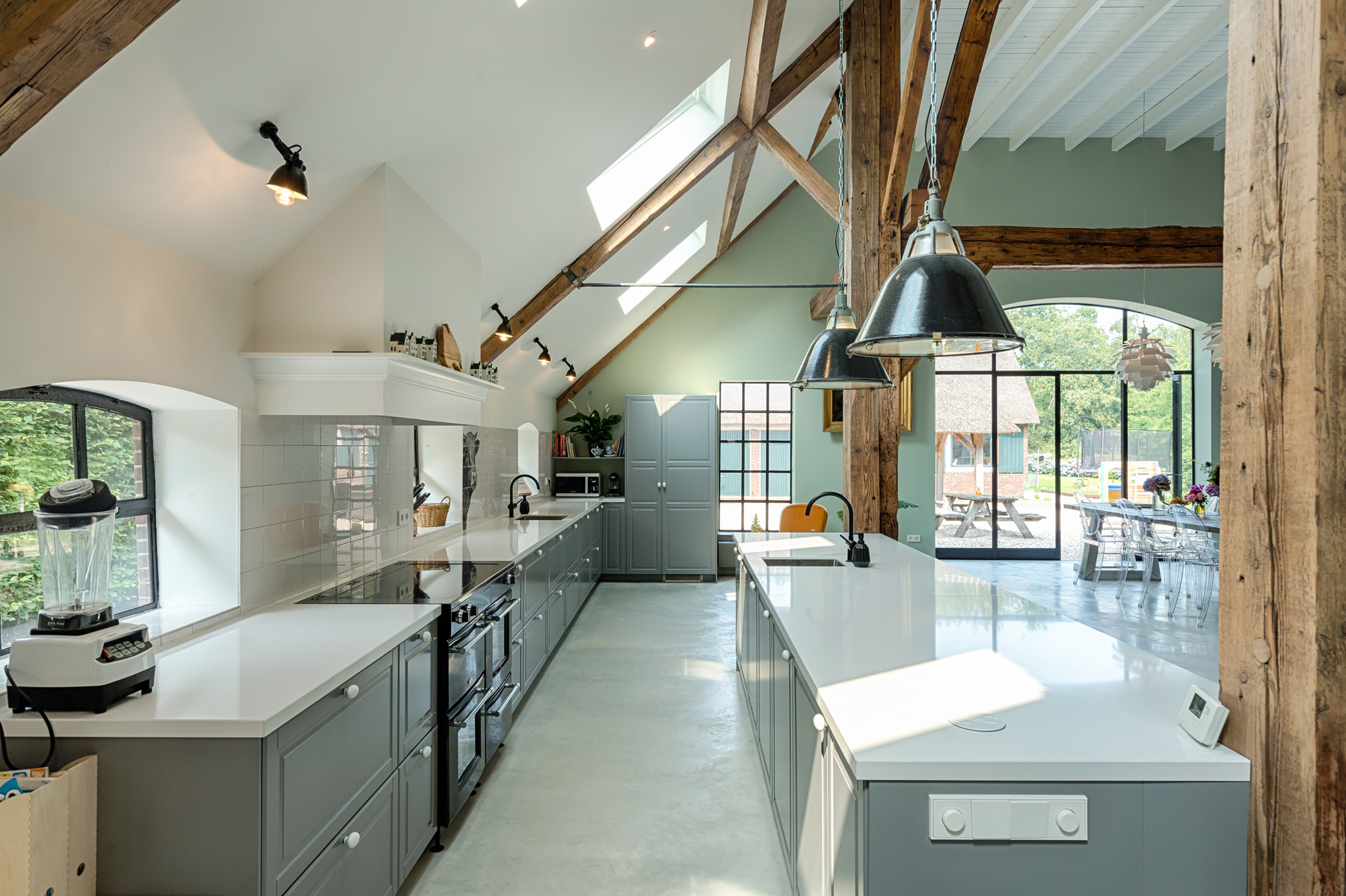 Met name de oude deel die als woonkamer werd gebruikt, vroeg om een grondige aanpak. De wens was om deze grote ruimte multifunctioneel als woonkamer / keuken / eetkamer / speelkamer en tv-kamer te kunnen gebruiken.