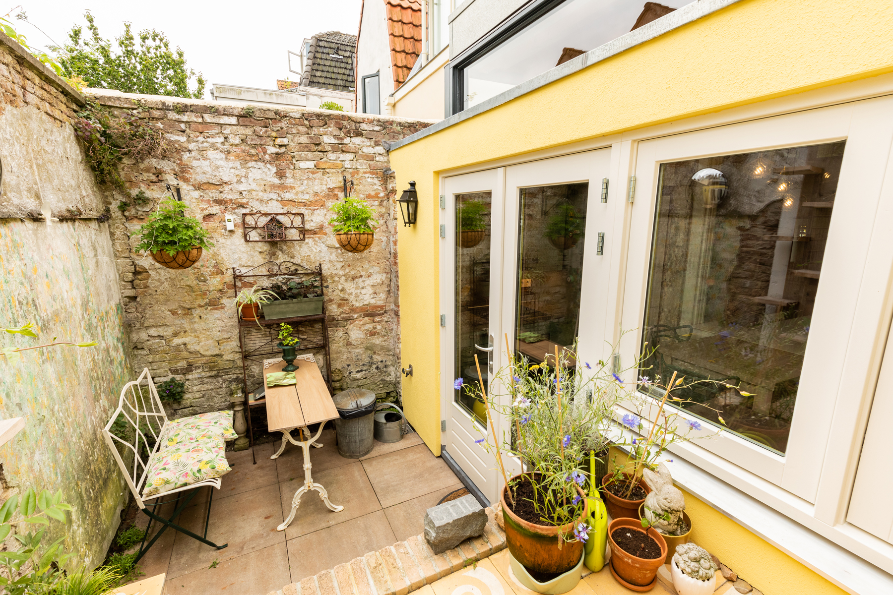 Achter een kleine stadswoning aan de Koddesteeg in Leiden is een kleine en zonnige stadsoase gecreëerd.