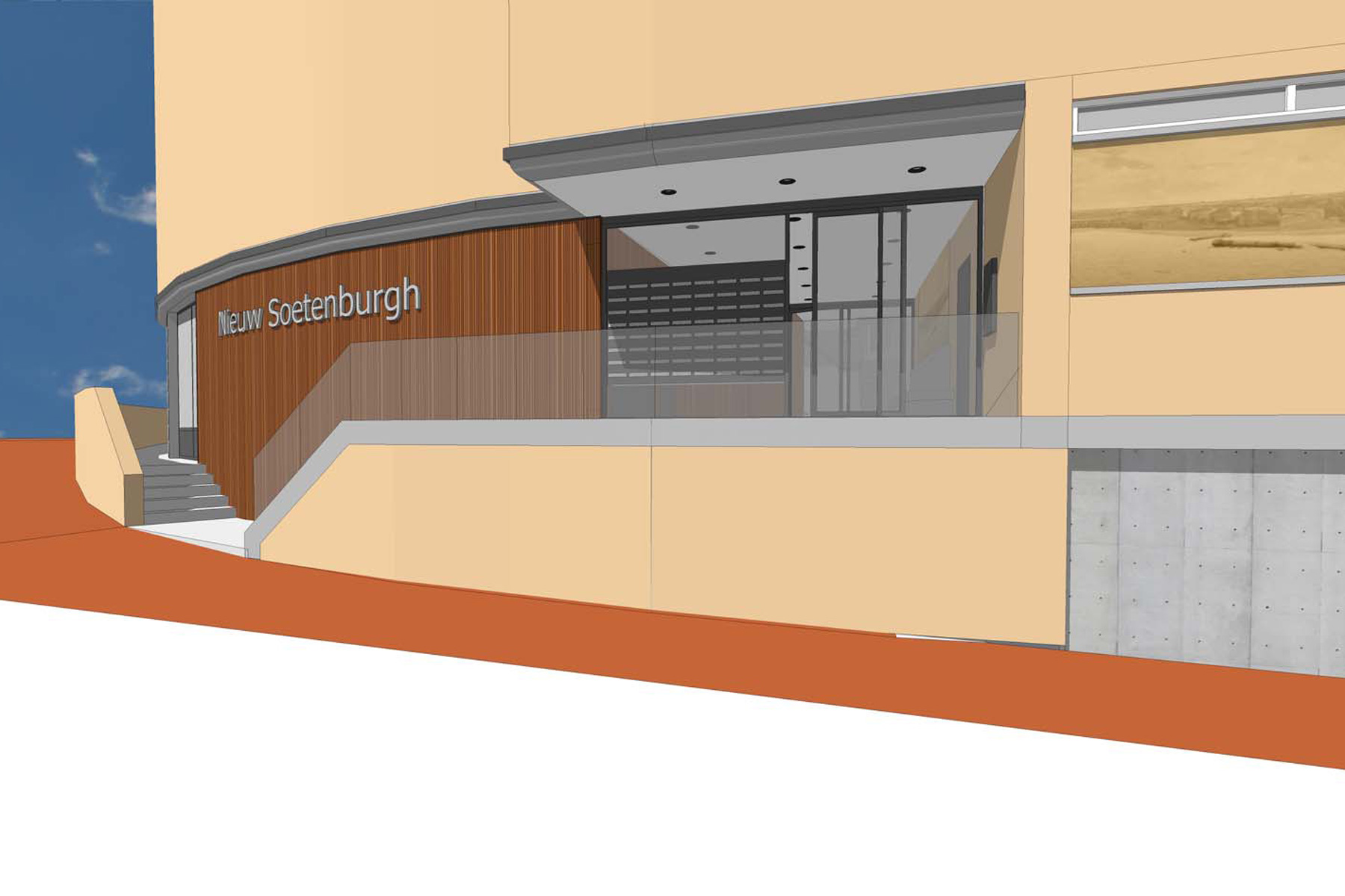 MW architectuur heeft een ontwerp gemaakt voor het verbeteren van de bestaande entree van dit woongebouw dat ligt op de hoek van de Boulevard en de Keizstraat in Schevingen, Den Haag.