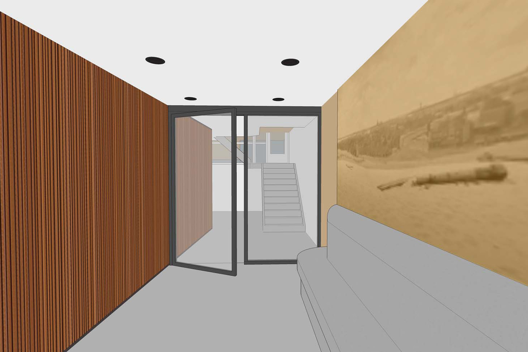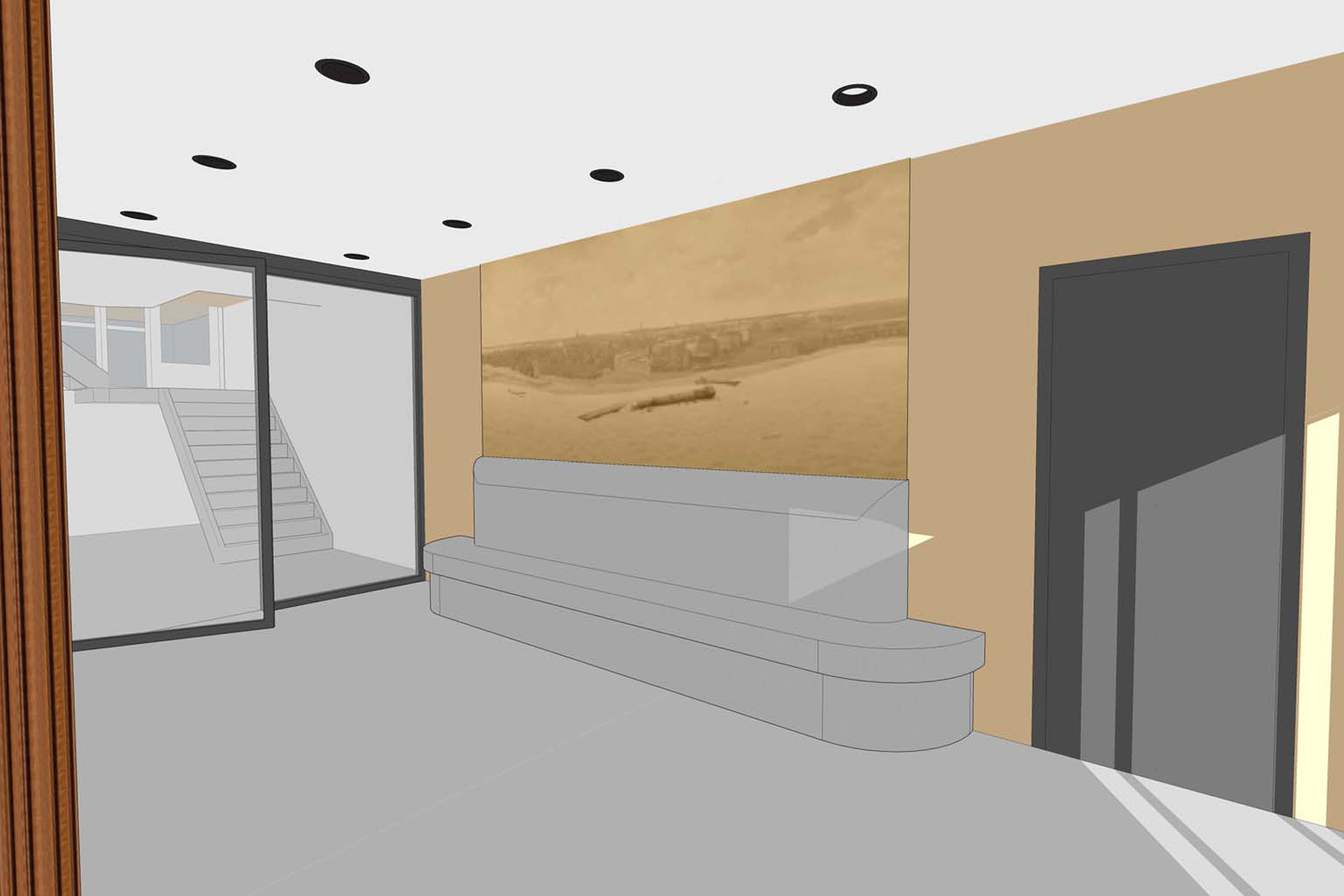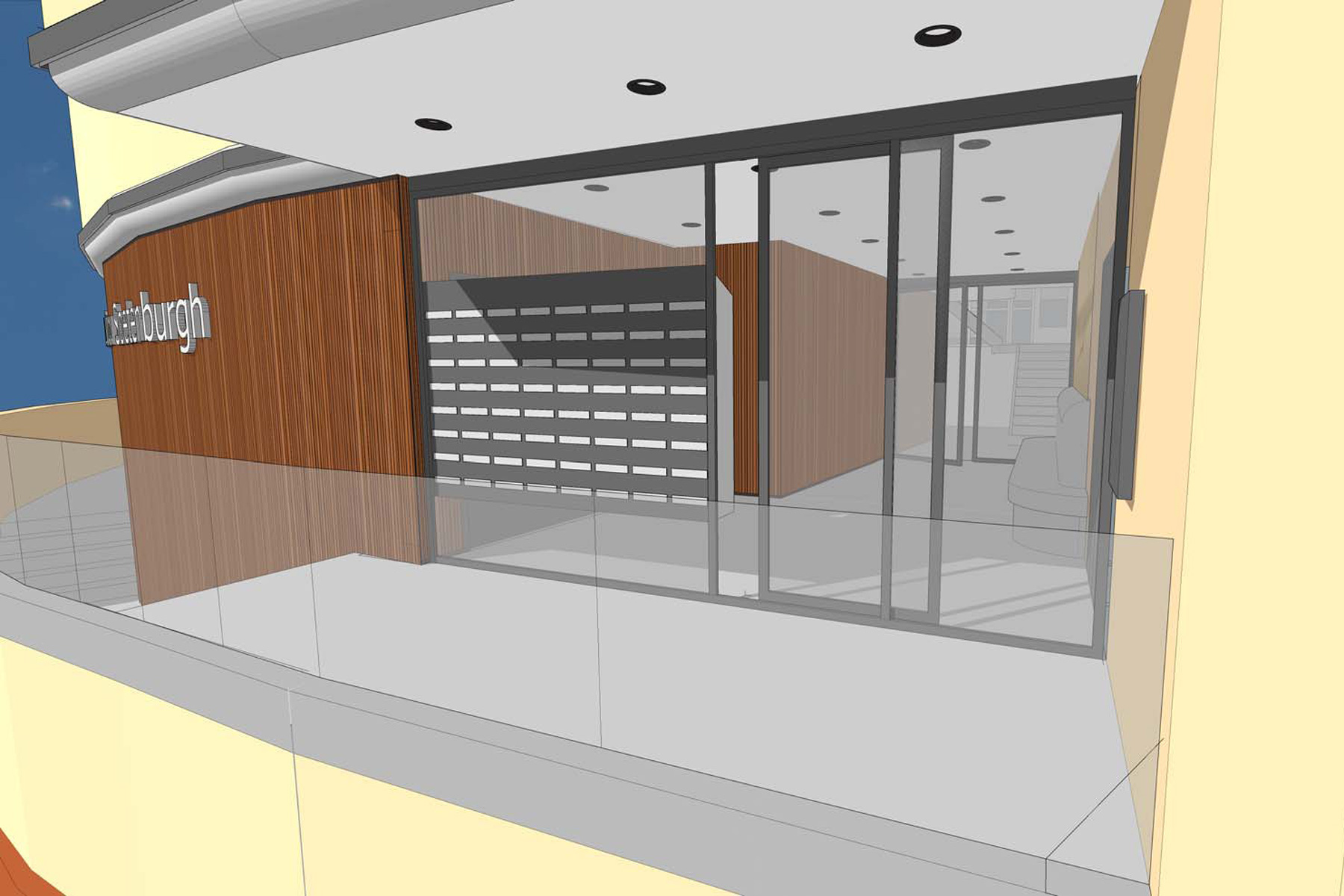 De huidige entree is erg donker, vangt veel wind en toont gedateerd. Door goed te analsyeren wat de sterke punten zijn, is een ontwerp opgesteld dat opener toont en meer gelegenheid geeft voor gebruik van de entree als een luxe lobby.