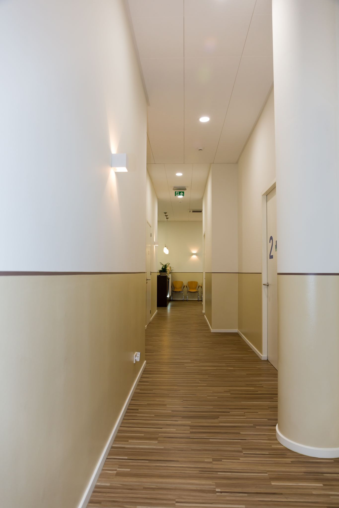 Door een rustige en gemoedelijke inrichting wordt de client op zijn gemakt gesteld. Veel aandacht is besteed aan het zo goed mogelijk gebruiken van de kwaliteit van de bestaande cascoruimte, namelijk de hoogte en de grote glazen gevels, om op die manier de ruimte voor de patiƫnten en werknemers zo prettig mogelijk te maken om in te verblijven.