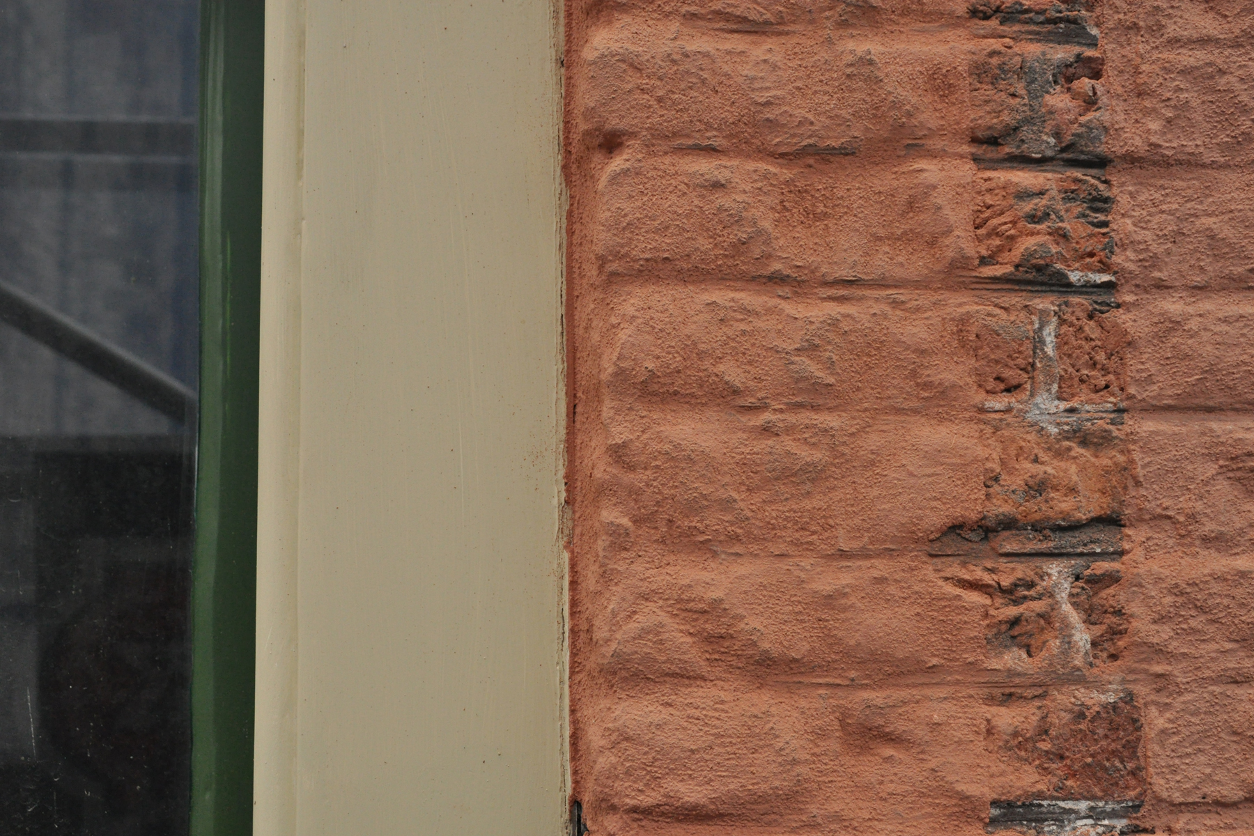 Het metselwerk was in een te slechte staat om onbehandeld te laten, vandaar dat ervoor gekozen is een beschermende kalei-laag aan te brengen in kleur van het metselwerk.