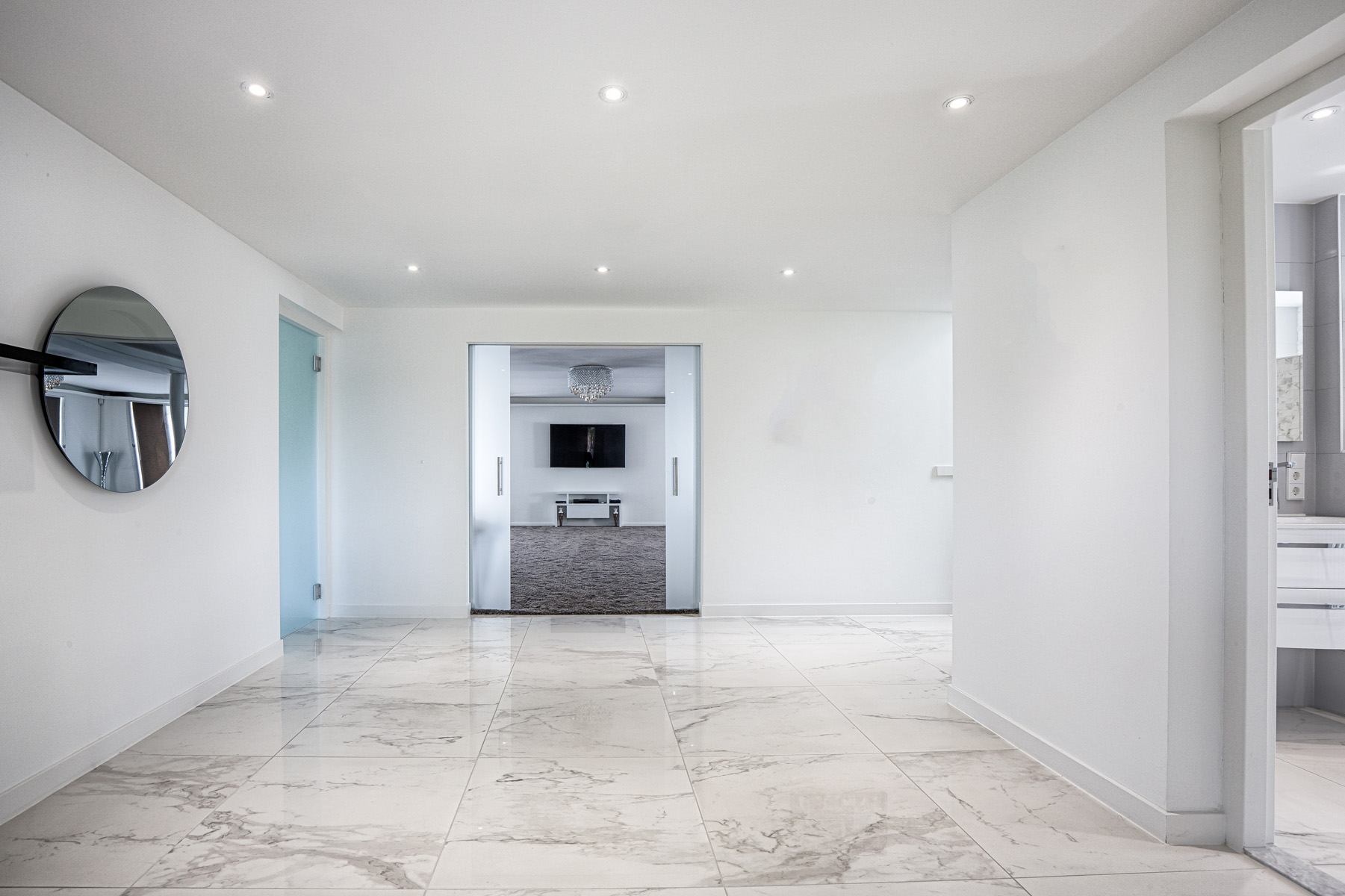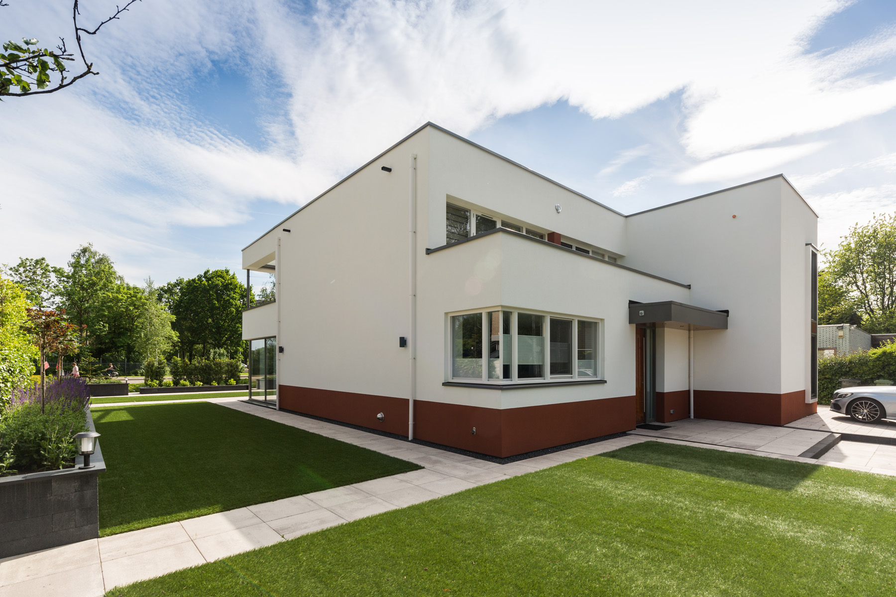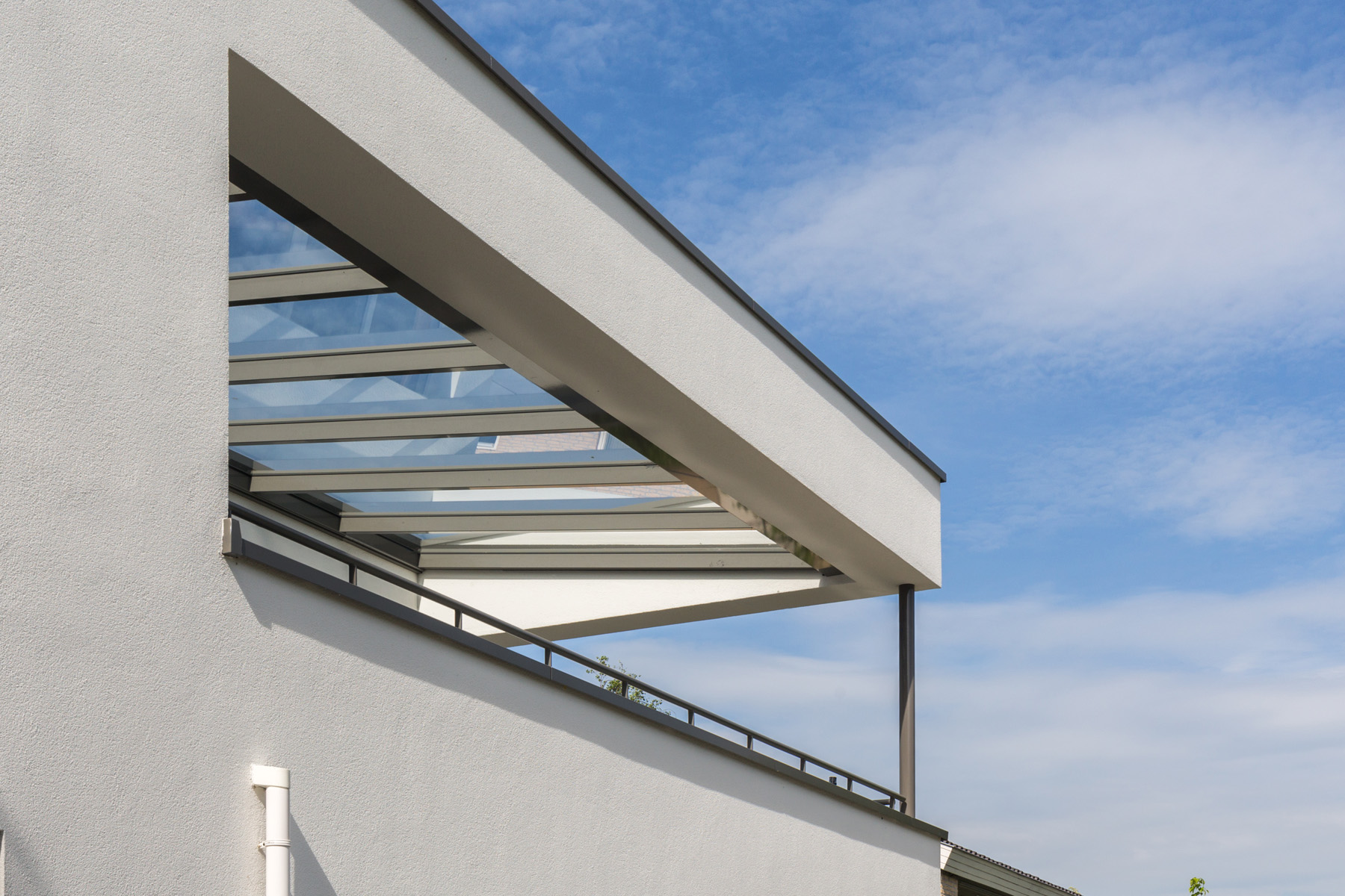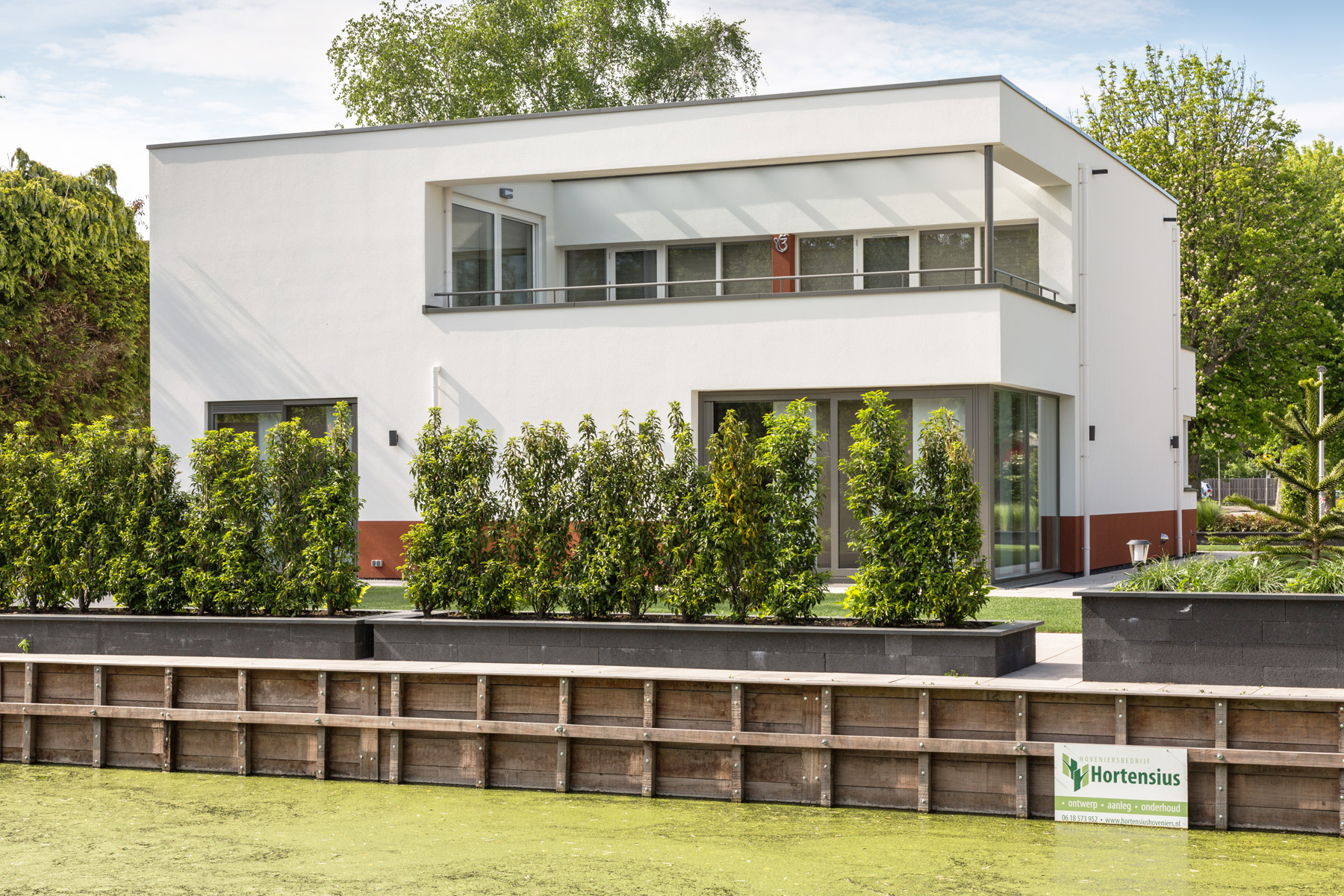 De balkons zorgen voor een extra verbijzondering van dit proect; aan de voorzijde is een ruim balkon dat uitzicht biedt over het park voor de villa en aan de achterzijde is een overdekt balkon gebouwd dat uitzicht biedt over de tuin en het water.