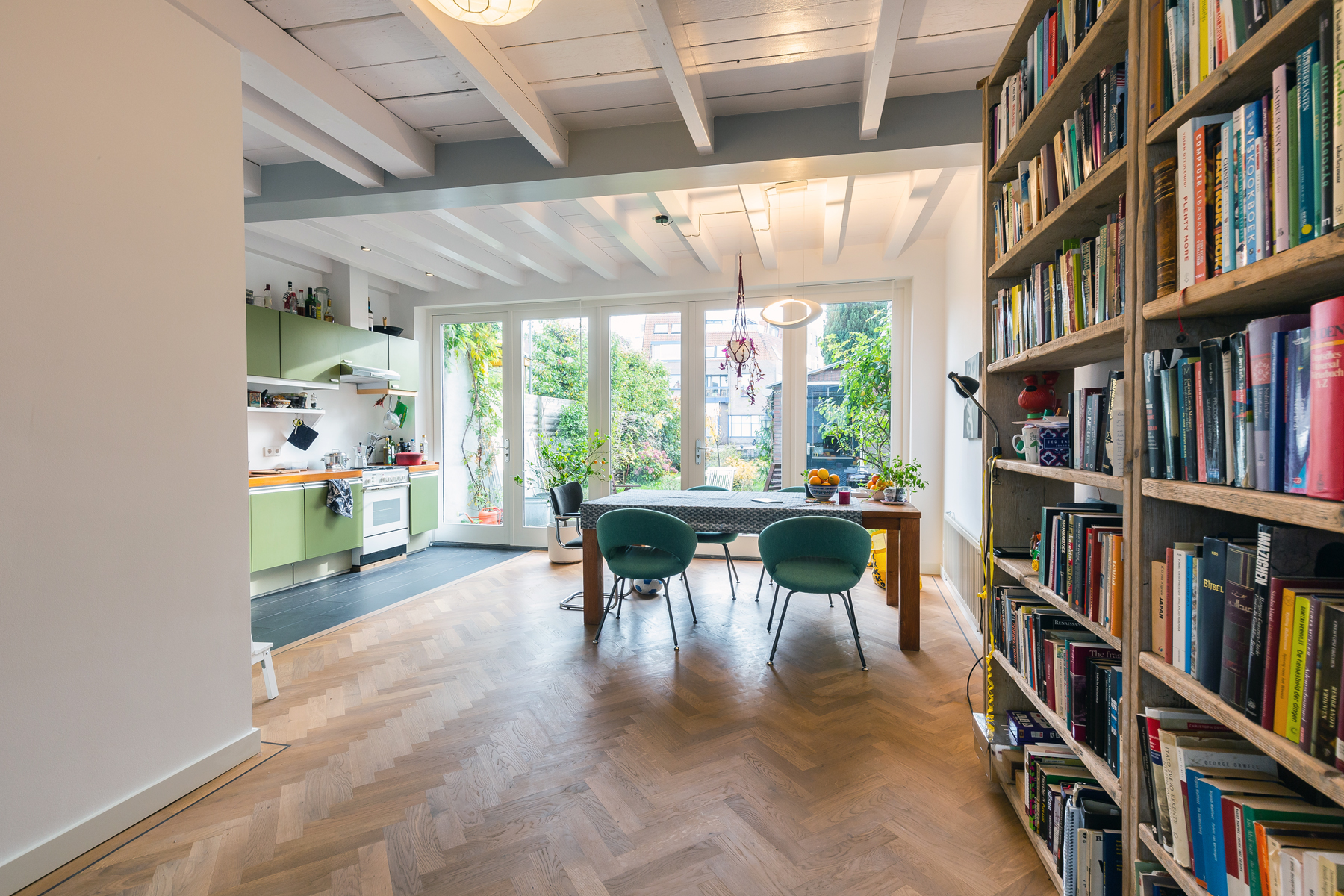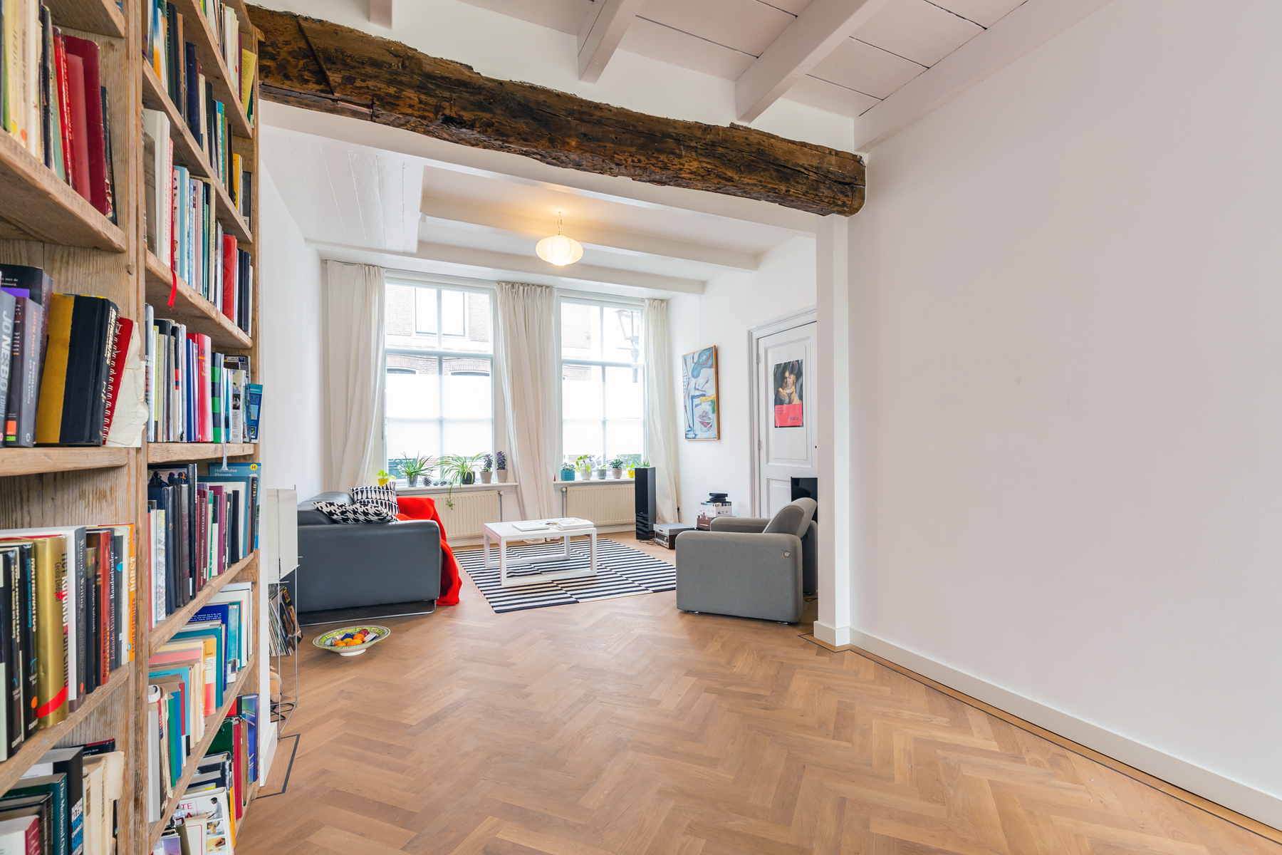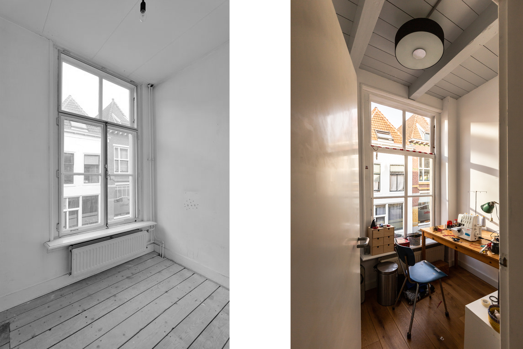 Deze monumentale dubbelwoning was lang bezit van een woningbouwvereniging die het begin jaren negentig van de vorige eeuw zeer minimaal heeft laten verbouwen. In het monumentale deel van het pand waren daardoor alle plafonds verlaagd en al het leidingwerk als opbouw aangebracht.