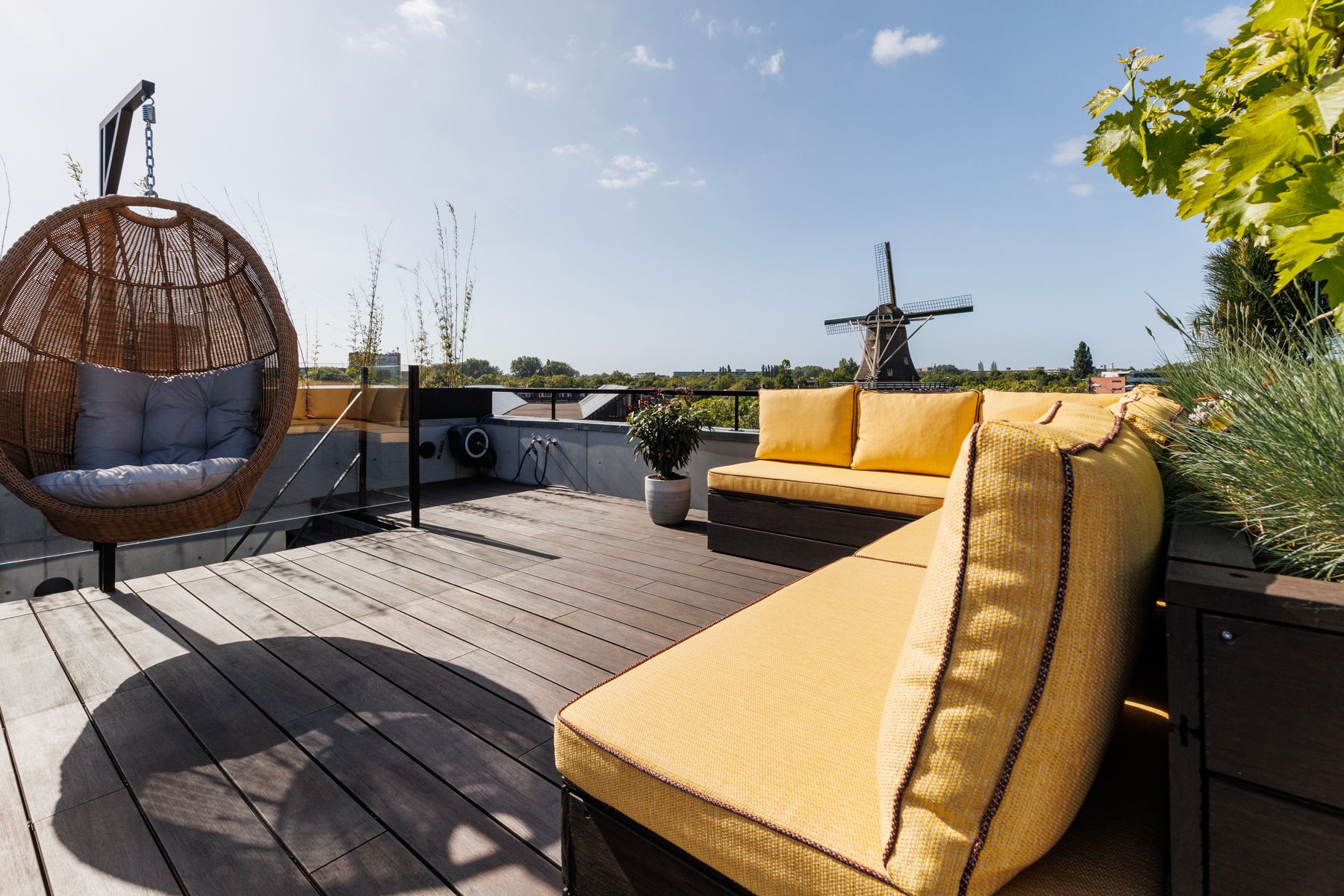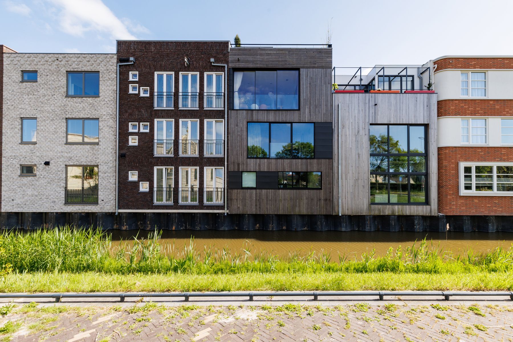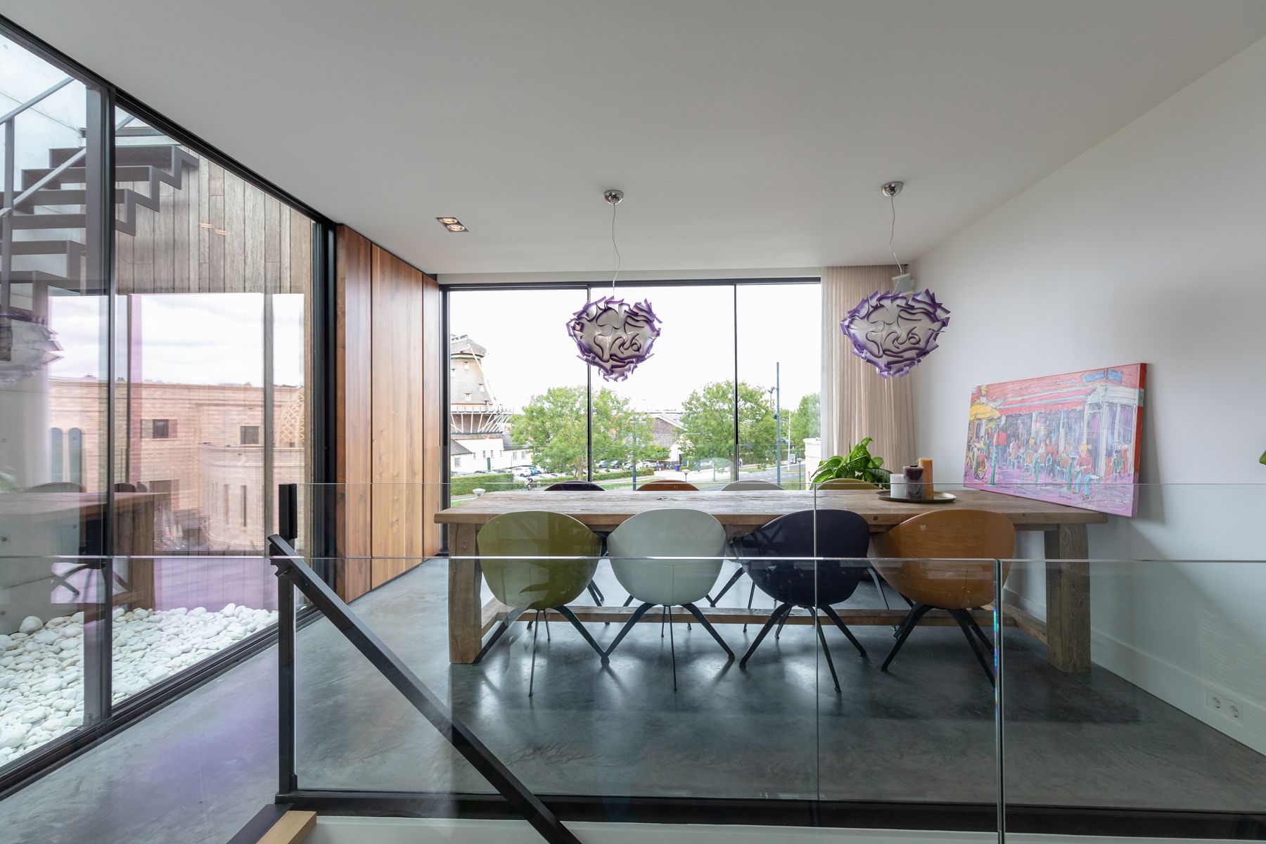 The houses are located at the rear of a private courtyard, which also provides access to the houses. At the front, the houses are located on the waterfront, with a beautiful view of the Heesterboom windmill on the Rhine behind them.